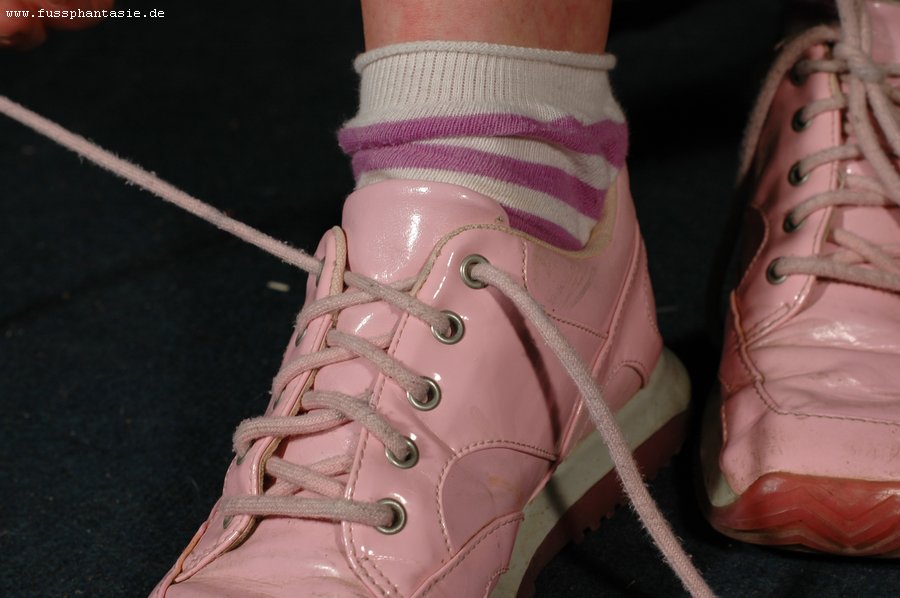 In this archive pack I arranged four old but gold series together. One of the first shootings ever was “Violet Striped Socks”. Jutta had some rosé colored Esprit plastic shoes which did some awesome things to the socks. Namely, the socks got wet from sweat.
