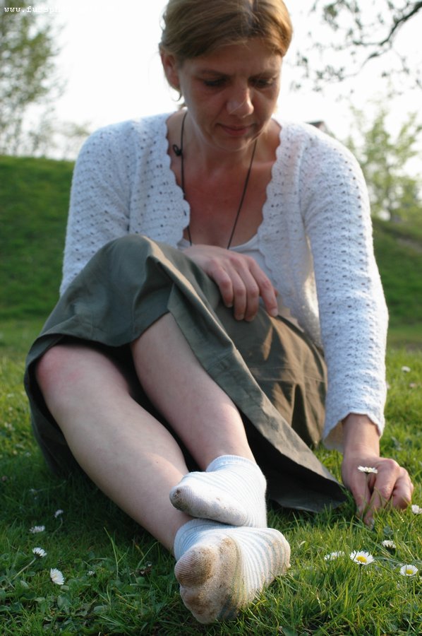 Jutta has made many photo series with me, so we did a variety of different things. One thing which hits me every time are dirty and well worn socks. Jutta had no problem with wearing her socks for many days and she was the first model who sold socks at fussphantasie also.